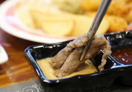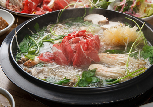 รับประทานอาหารกลางวัน ณ ภัตตาคาร เมนู ชาบูชาบู หม้อไฟเกาหลีเสิร์ฟพร้อมเครื่องเคียงแบบเกาหลีหลากหลายชนิด พร้อมน้ำจิ้ม โดยนำเนื้อหมูมาแล่ให้บาง แล้วนำไปใส่ในหม้อไฟพร้อมผักต่างๆ พร้อมทั้งใส่วุ้นเส้นเกาหลีลงไป หรือจะรับประทานโดยการน้ำเนื้อหมูไปแกว่งในน้ำซุปร้อนๆ ให้สุกพอเหมาะก็อร่อยไปอีกแบบ