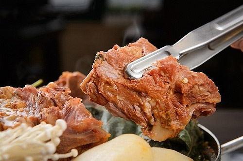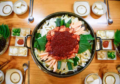 รับประทานอาหารค่ำ ณ ภัตตาคาร เมนู คัมจาทัง (Gamjatang) หรือสตูว์กระดูกหมู เล้งสัญชาติเกาหลีแท้ๆ เป็นซุปเผ็ดร้อนเกาหลี ทำจากกระดูกสันหลัง หรือ กระดูกคอของหมู เคี่ยวจนได้ที่และเติมส่วนประกอบต่างๆ อาทิ มันฝรั่ง เส้นหมี่หัวไชเท้า ใบงา หัวหอมใหญ่ พริกขี้หนูและงาป่น