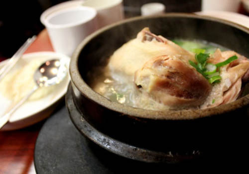 รับประทานอาหารกลางวัน ณ ภัตตาคาร เมนู ไก่ตุ๋นโสม (Samgyetang) เมนูชาววัง ที่รังสรรค์ให้ออกมาเป็นเมนูเพื่อสุขภาพและทรงคุณค่าทางโภชนาการ เน้นไก่ทั้งตัวอายุไม่เกิน 45 วัน ยัดไส้ด้วยสมุนไพรและส่วนผสมมากไปด้วยคุณประโยชน์ อาทิ ข้าวเหนียว รากโสม พริกไทยแดง เกาลัด พุทราจีน เป็นต้น