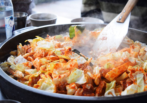 รับประทานอาหารกลางวัน ณ ภัตตาคาร อิ่มอร่อยกับเมนู ทัคคาลบี้ อาหารขึ้นชื่อของเกาหลีใต้ ที่มีไก่เป็นวัตถุดิบหลัก คลุกเคล้าด้วยเครื่องปรุง และนำมาผัดบนกะทะยักษ์ เสิร์ฟพร้อมข้าวสวย ซุปสาหร่าย และกิมจิ ต่างๆแบบวาไรตี้